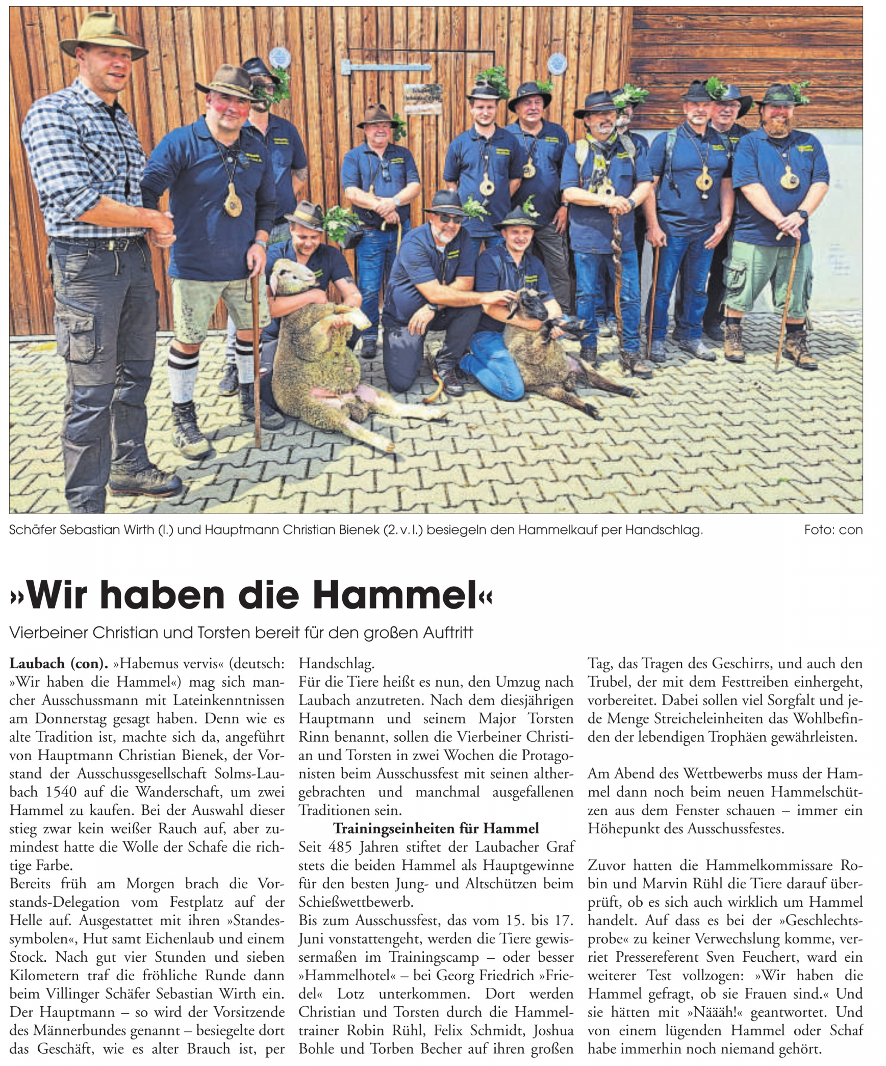 Major Rinn, Hauptmann Bienek, Karl Georg Graf zu Solms Laubach, Adjutant Thiel, Hammel Christian und die Hammelkinder freuen sich mit dem Hammelschützen 2025.