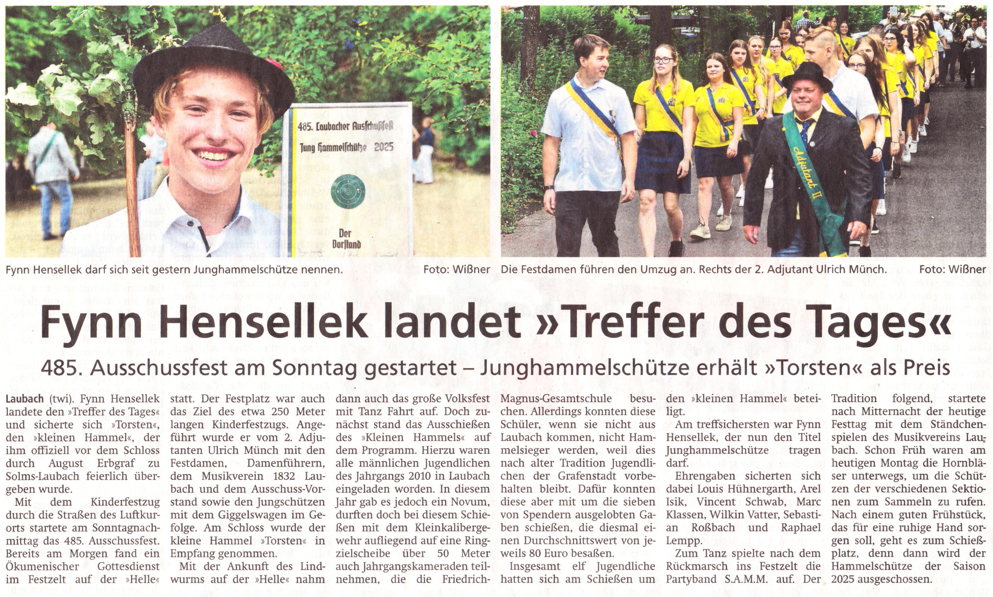 - Sonntag 15.06: Das 485. Laubacher Ausschussfest beginnt mit dem Kinderumzug am Sonntag.