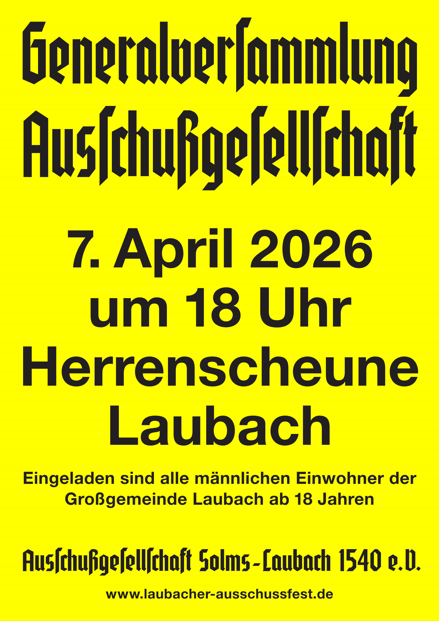 Liebe 18-jährige Männer Laubachs und den Stadtteilen,